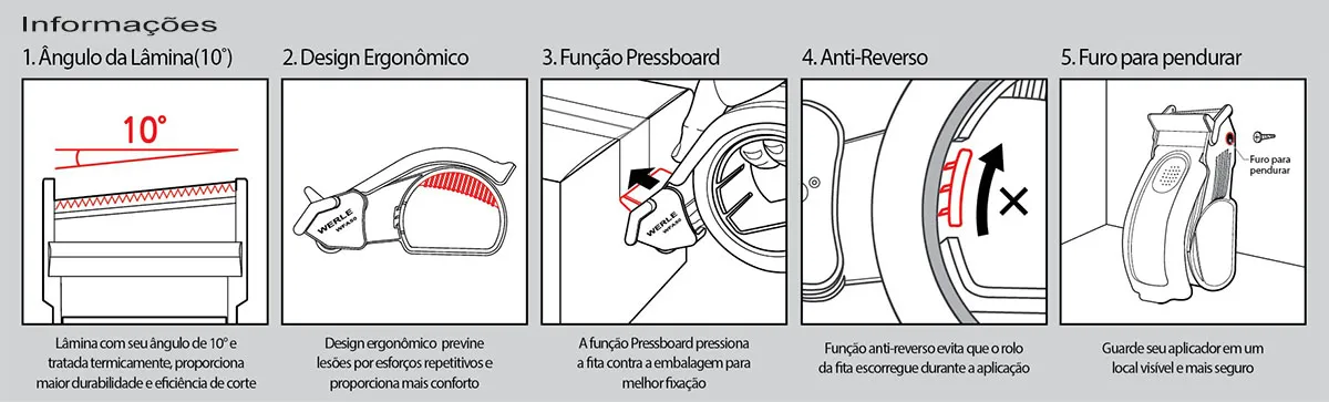 Aplicador Ergonômico Para Fita Adesiva WFA-50 Werle Máquinas